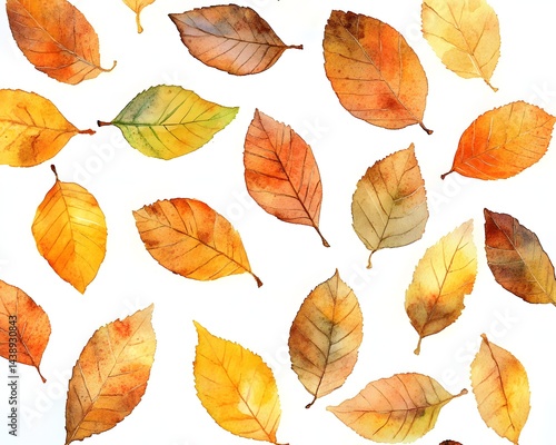 © aobStudioUD, Obraz premium Autumn Watercolor Leaves in Shades of Orange and Yellow