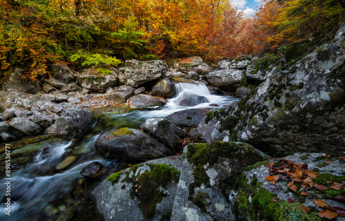 © Inna, Obraz premium Autumn waterfall in autumn forest