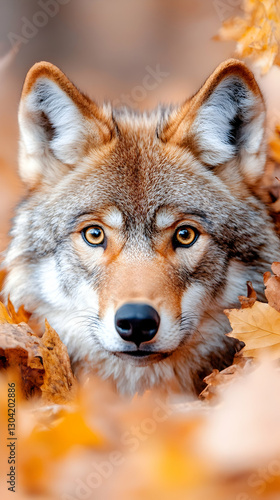Fototapeta premium Autumn Wolf Portrait in Leaves
