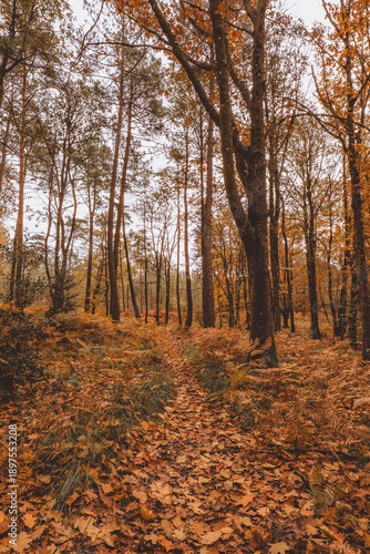 © Romain TALON, Fototapeta premium Autumn woodland path covered with fallen leaves
