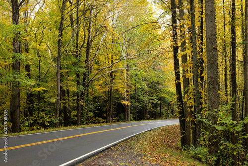 Fototapeta premium Autumn woods with a road