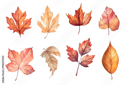 © Oksana_Latysheva, Fototapeta premium Autumn yellow leaves watercolor collection isolated on transparent background