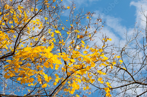 Fototapeta premium autumn yellow maple crown. Yellowed leaves
