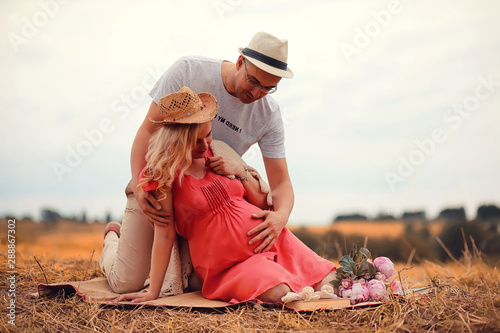 © alexkich, Obraz premium Autumn young pregnant girl on a date