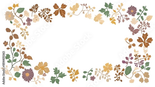 Obraz premium Autumnal botanical elements compose a decorative frame around empty white space