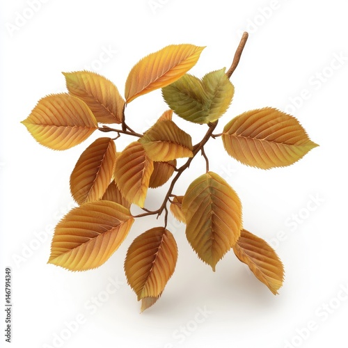 © NikahGeh, Obraz premium Autumnal branch with vibrant fall foliage.