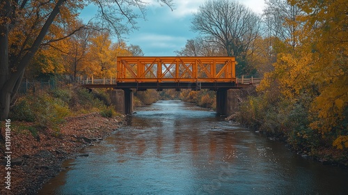 © Erisna Yolanda, Obraz premium Autumnal bridge over a serene stream
