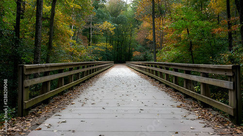 © Robin, Obraz premium Autumnal Bridge Pathway Through a Forest