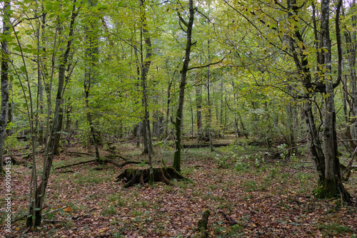 © Aleksander Bolbot, Obraz premium Autumnal deciduous stand with rotting wood