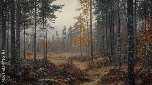 © rawdesign, Obraz premium Autumnal Enchantment: A Misty Forest Path