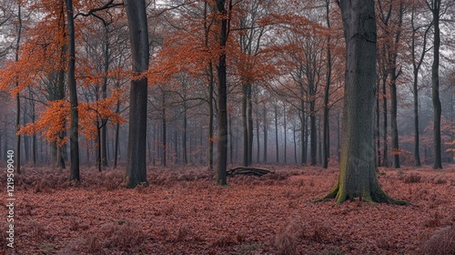 © Irsyad, Fototapeta premium Autumnal Enchantment: A Misty Forest Scene