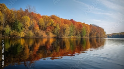 © fruit, Fototapeta premium Autumnal foliage reflected in a calm lake.