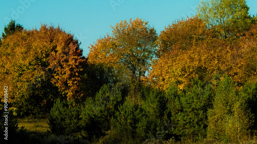 © Jan, Naklejka premium Autumnal forest in sunny day, Poland.