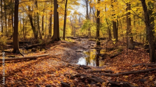 Fototapeta premium Autumnal Forest Path with Stream