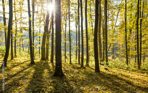 © photolink, Fototapeta premium autumnal forest with sunbeams