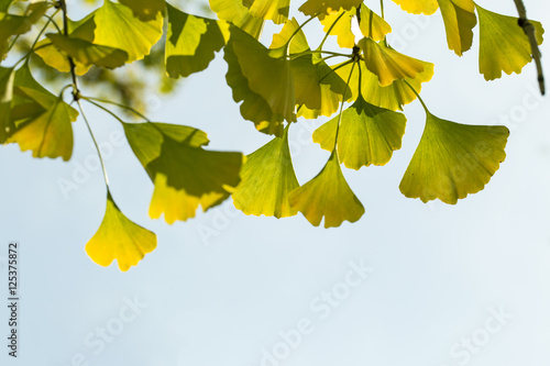 © ddukang, Obraz premium Autumnal ginkgo tree leaf background