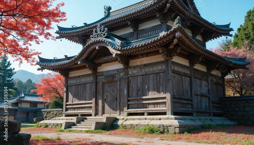 © NgoHong, Fototapeta premium Autumnal Japanese Temple Architecture