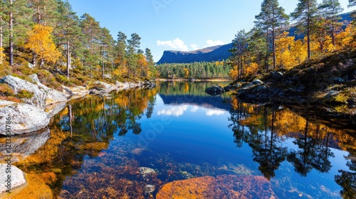 © PAPAHJAHATZ, Naklejka premium Autumnal lake reflection in mountain valley