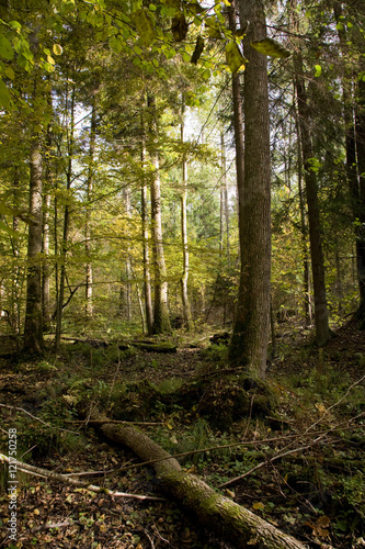 © Aleksander Bolbot, Fototapeta premium Autumnal landscape of deciduous stand in sunset