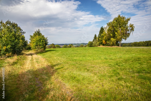 © Jaroslav Machacek, Fototapeta premium Autumnal landscape under cloudy blue sky