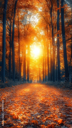 © Kamil, Fototapeta premium Autumnal Landscape with Sunbeams in the Park