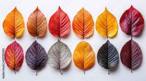 © abdul kahfi, Obraz premium Autumnal Leaf Collection: A Spectrum of Fall Colors