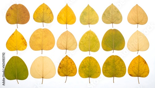 Obraz premium Autumnal Leaf Collection: Varied Hues and Shapes on White