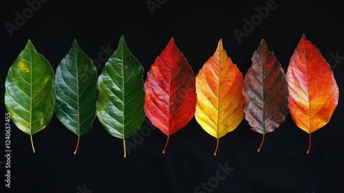 Fototapeta premium Autumnal Leaf Progression: A Vibrant Display of Seasonal Change