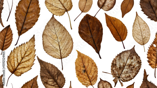 Obraz premium Autumnal Leaves: A collection of intricate, delicate leaves in warm earth tones, artfully arranged to showcase the textures and veins