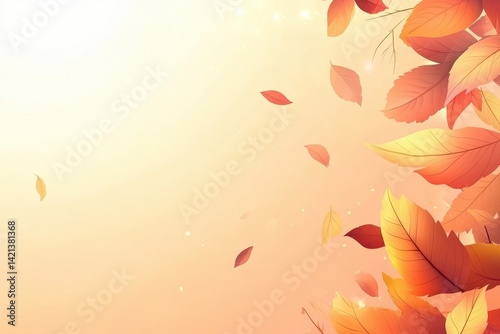 Fototapeta premium Autumnal leaves fall gently on soft pastel background