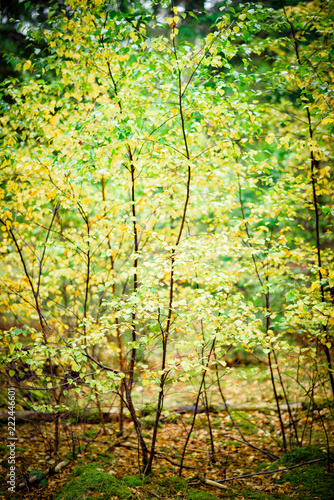 © Jon, Obraz premium Autumnal leaves on a Birch tree saplingNatural Woodland