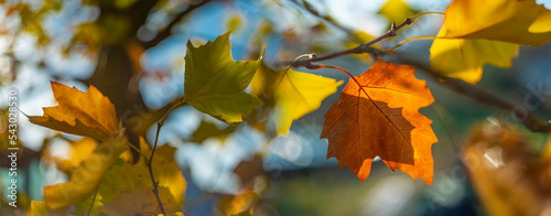 © Vera Kuttelvaserova, Fototapeta premium autumnal leaves with nice soft artistic bokeh