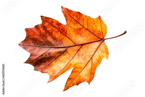 © Eibrahim Imagery, Obraz premium Autumnal maple leaf with vibrant colors displayed on a transparent field isolated on transparent background
