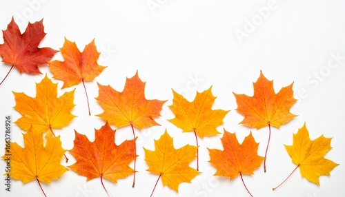 Fototapeta premium Autumnal Maple Leaves on White Background A Vibrant Fall Composition