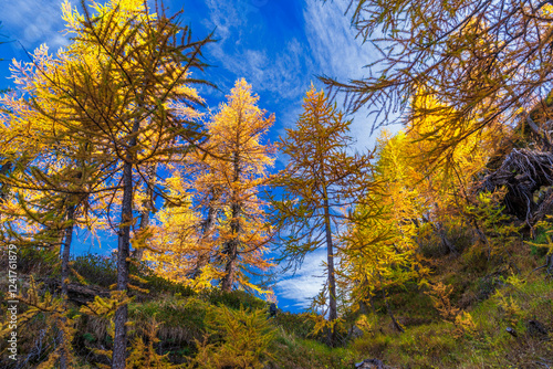 Fototapeta premium autumnal mountain landscape inside the Alpe Devero, Val D'Ossola, Verbania,...