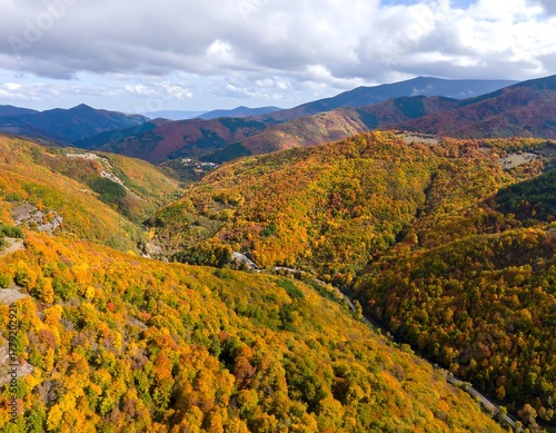 © Suci, Fototapeta premium Autumnal mountain valley panorama