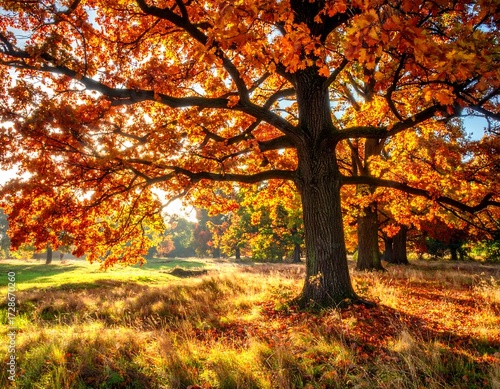 © kertas, Fototapeta premium Autumnal oak tree in a park