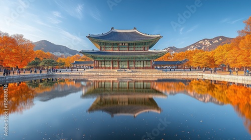 © Hafidz, Naklejka premium Autumnal palace reflection in calm water.