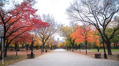 Naklejka premium Autumnal Park Path Scenic Fall Foliage Trees