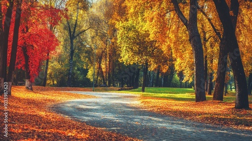 © ellisa_studio, Naklejka premium Autumnal Path in the Forest