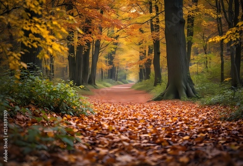 © Ahmad, Obraz premium Autumnal Path Through Golden Forest