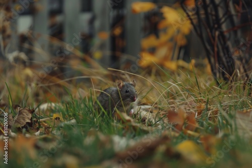 © ChaoticMind, Fototapeta premium Autumnal rat foraging in the wild