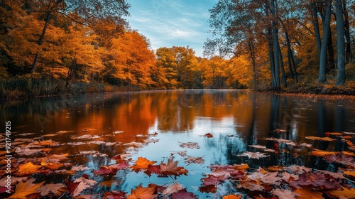 © BerkahStock, Obraz premium Autumnal Reflection in Still Water