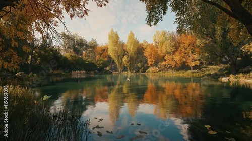© Anak, Fototapeta premium Autumnal Reflections on a Serene Lake