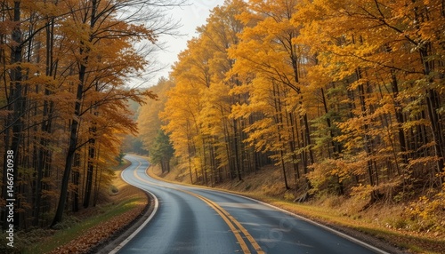 © dewi, Obraz premium Autumnal Road Through Golden Forest