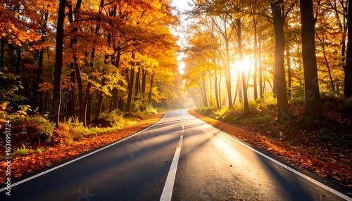 Fototapeta premium Autumnal road through golden trees