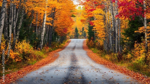 Obraz premium Autumnal Road Through Vibrant Forest