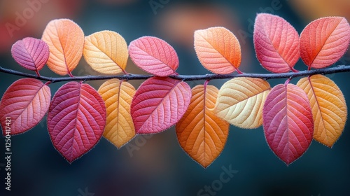 © Yuni, Fototapeta premium Autumnal symphony: A vibrant branch of dogwood leaves in warm hues