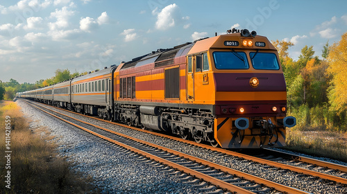 © suminah, Obraz premium Autumnal Train Journey Through Golden Fields