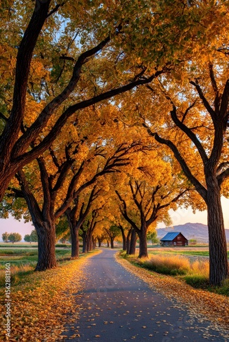 © Ratmi, Fototapeta premium Autumnal tree-lined road